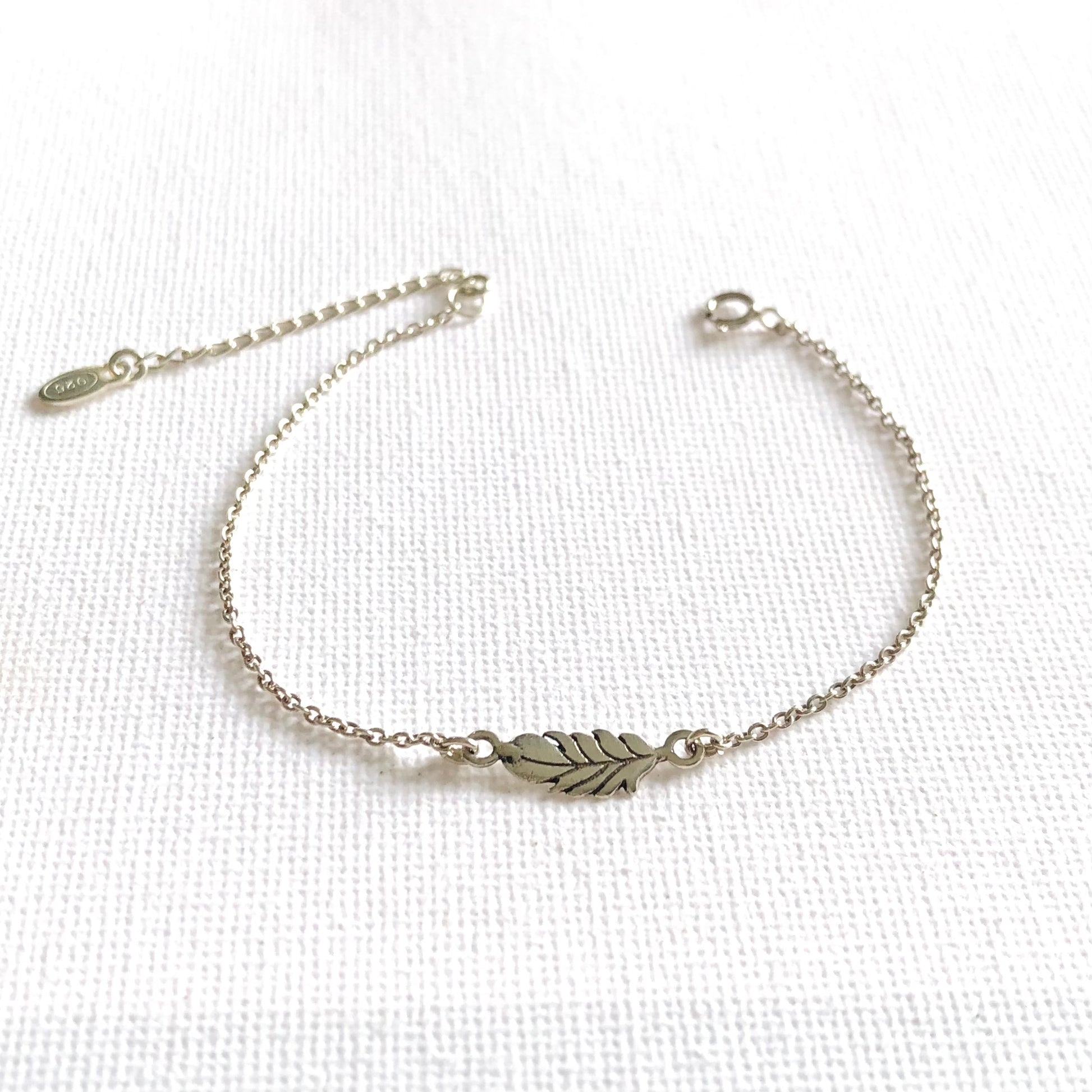 Pulsera realizada con una cadena de plata y un charm de plumas.