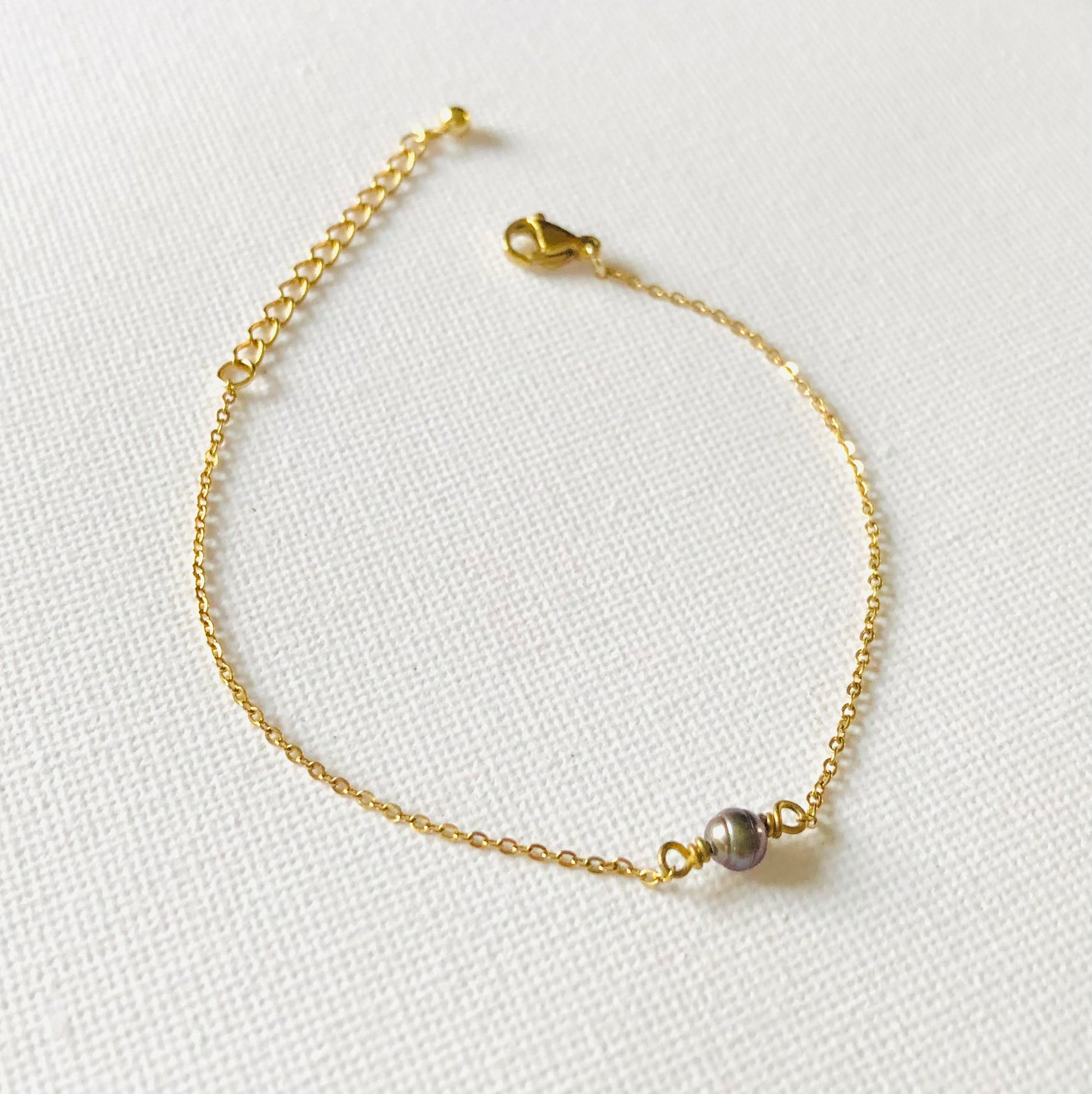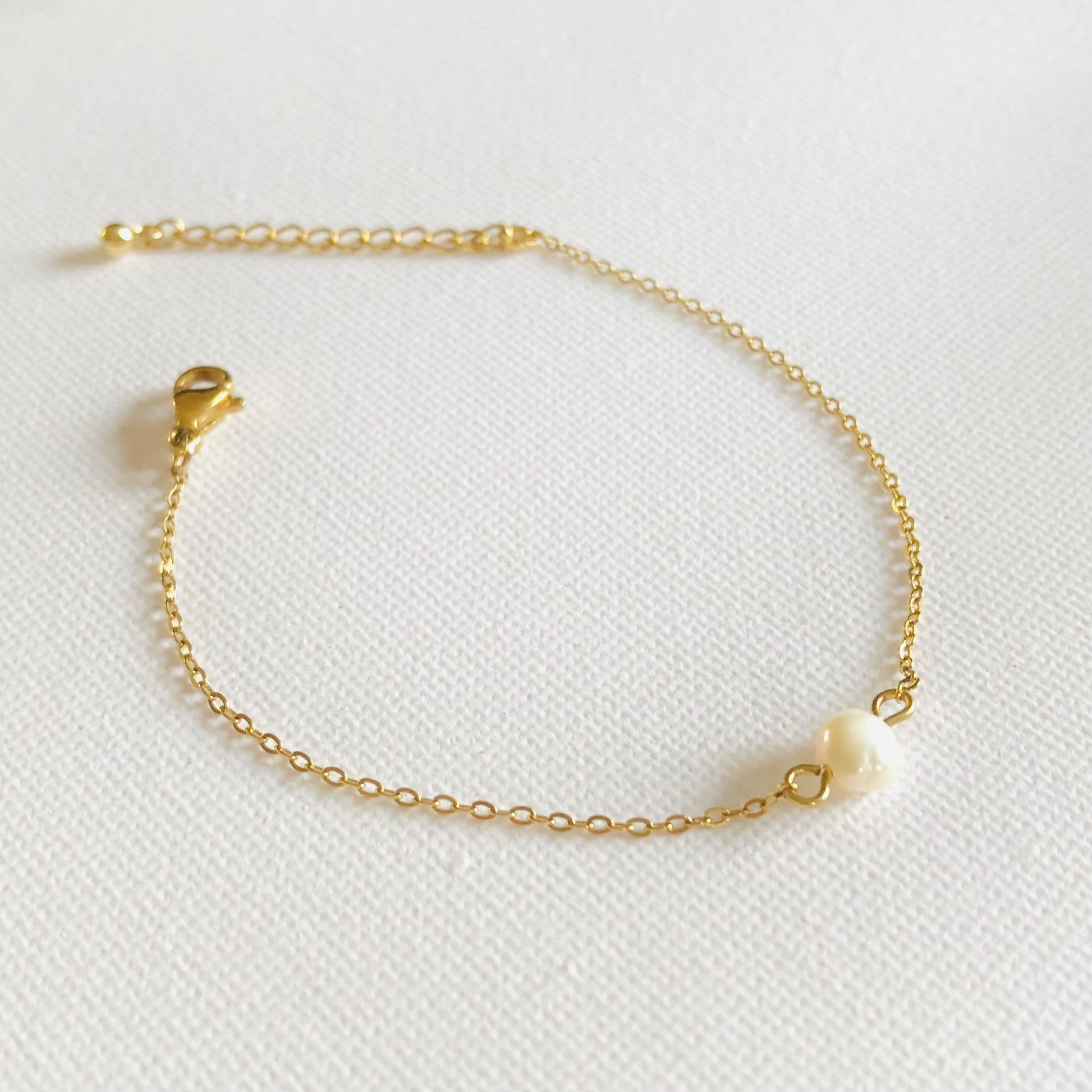 Una pulsera realizada con una fina cadena y una perla de agua dulce.