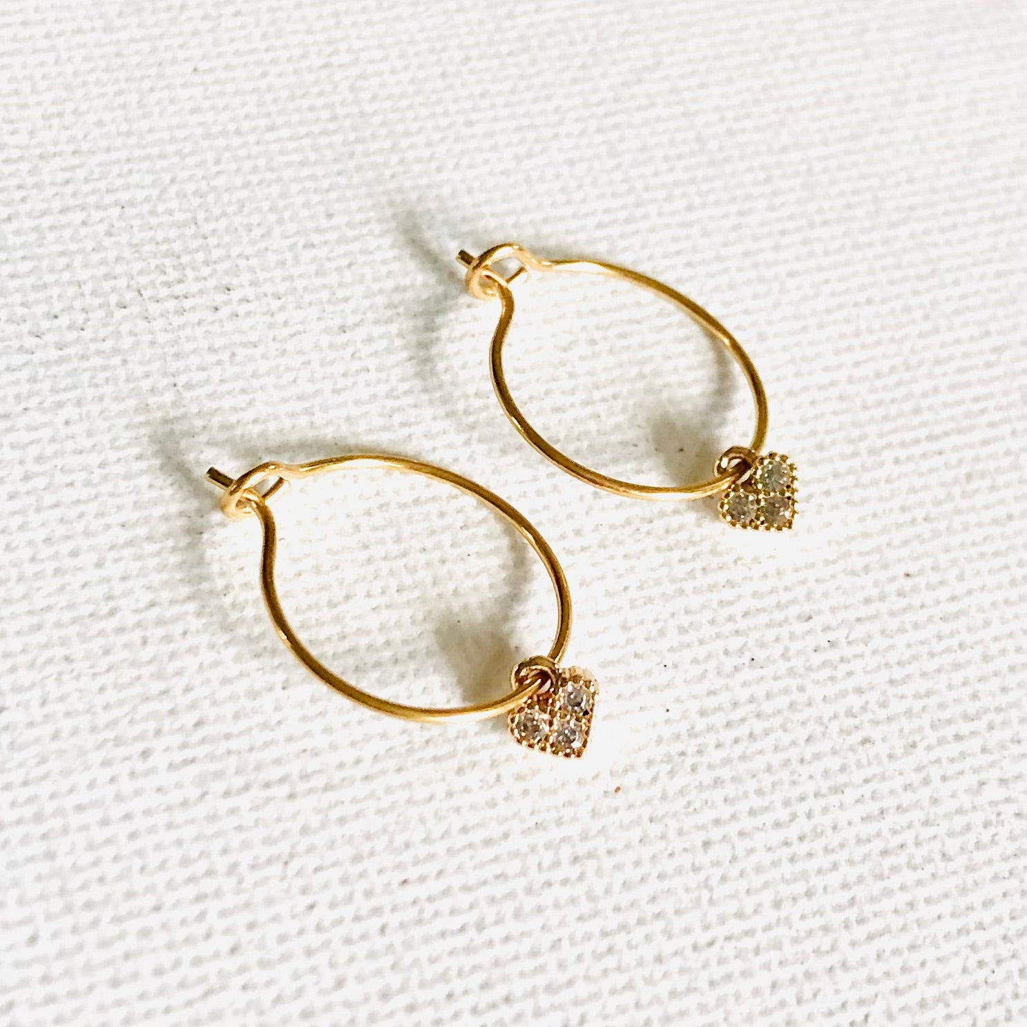 Mini aros elaborados con un charm mini corazón realizado en acero inoxidable y circonitas.