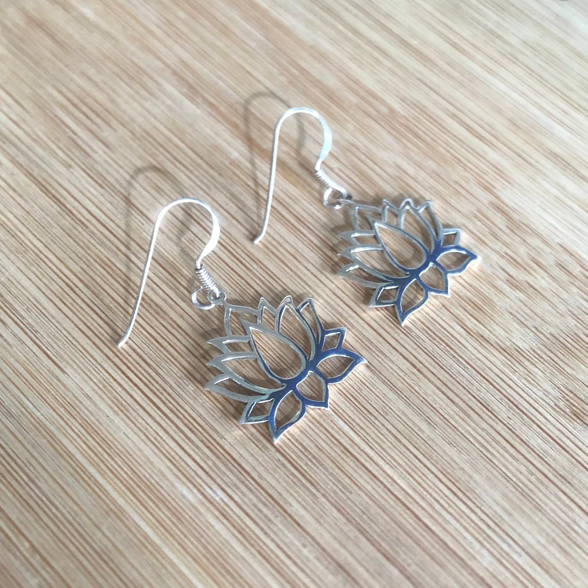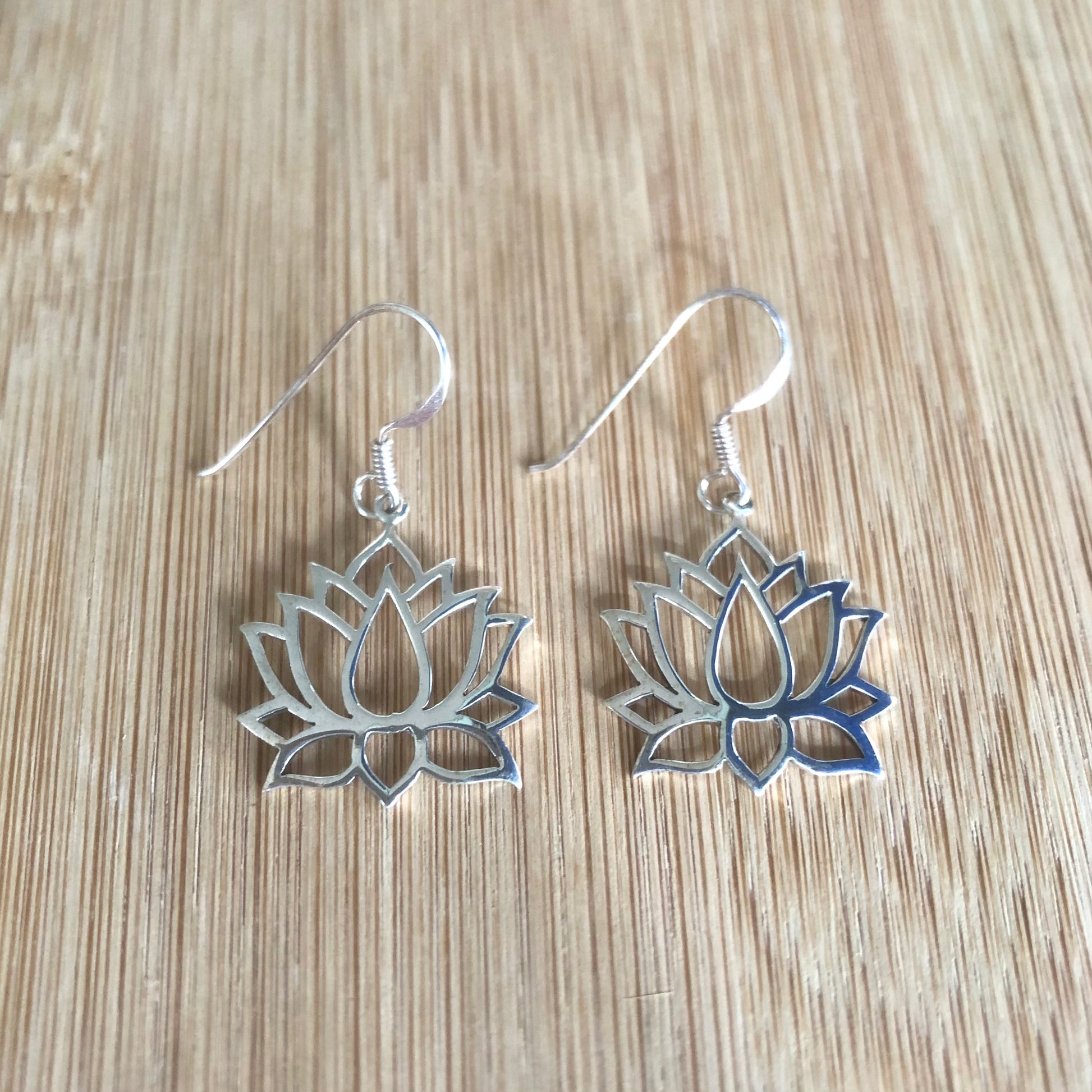 Pendant earrings made in silver 925 with a big lotus flower pendant.