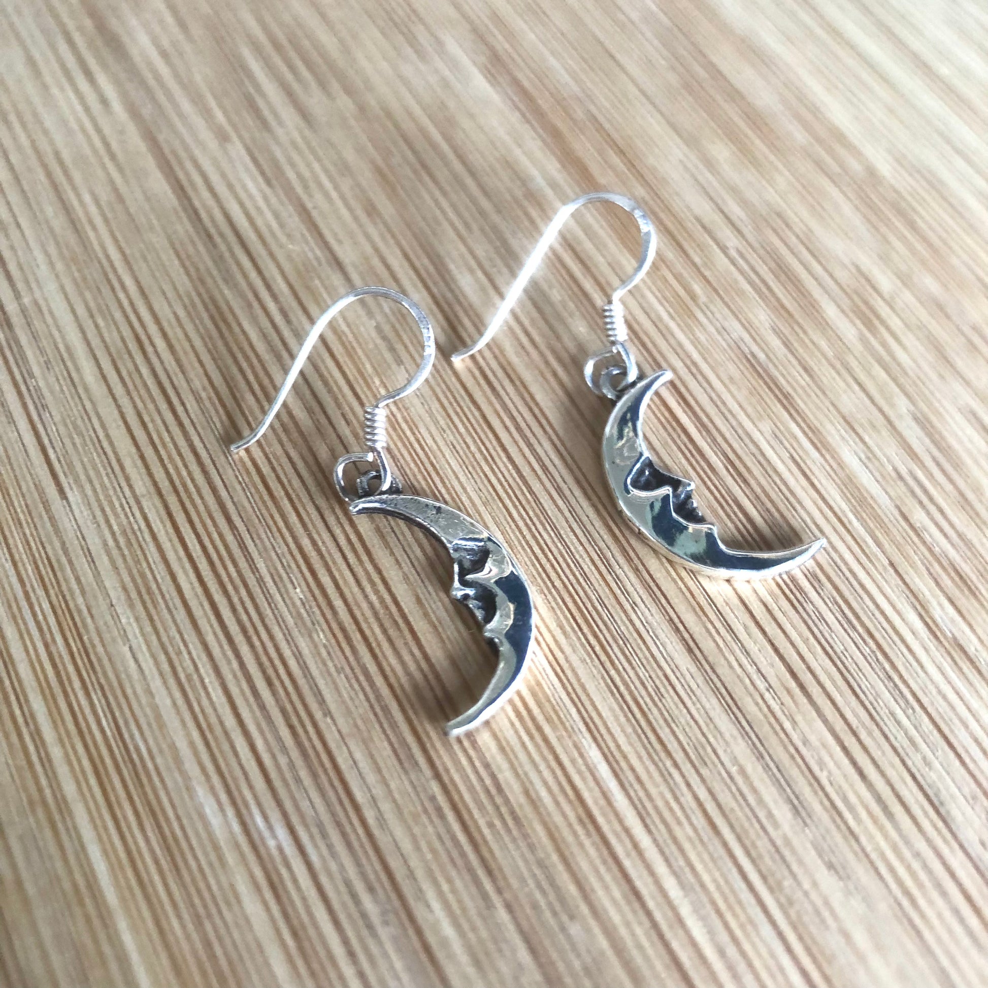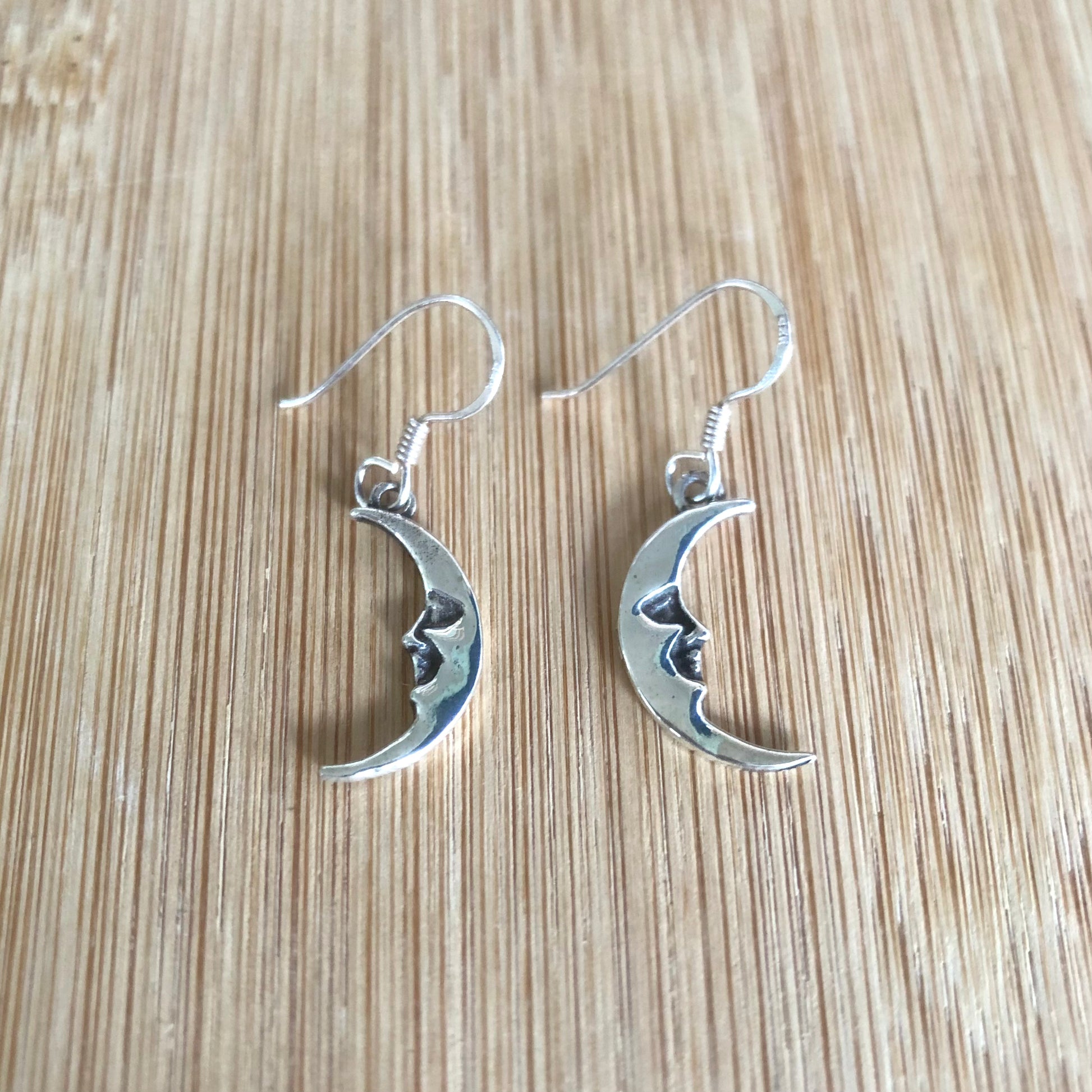Pendant earrings made in silver 925 with moon crescent with face pendant.