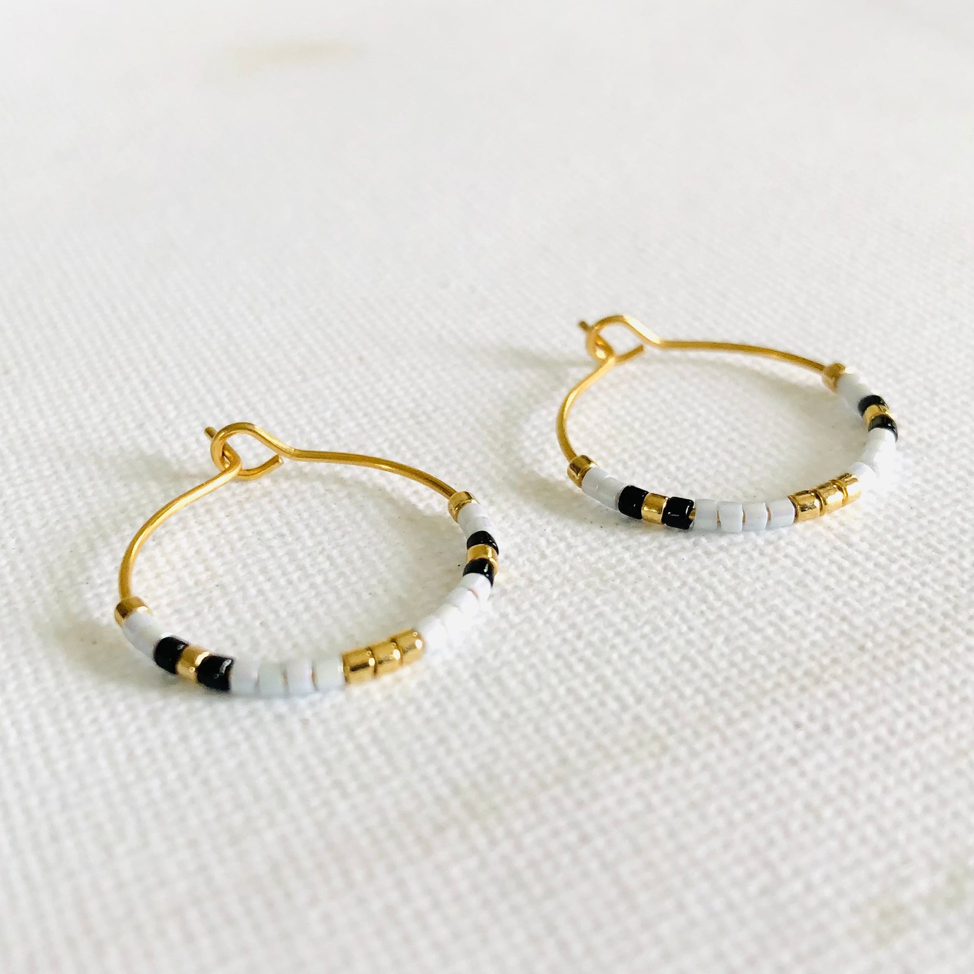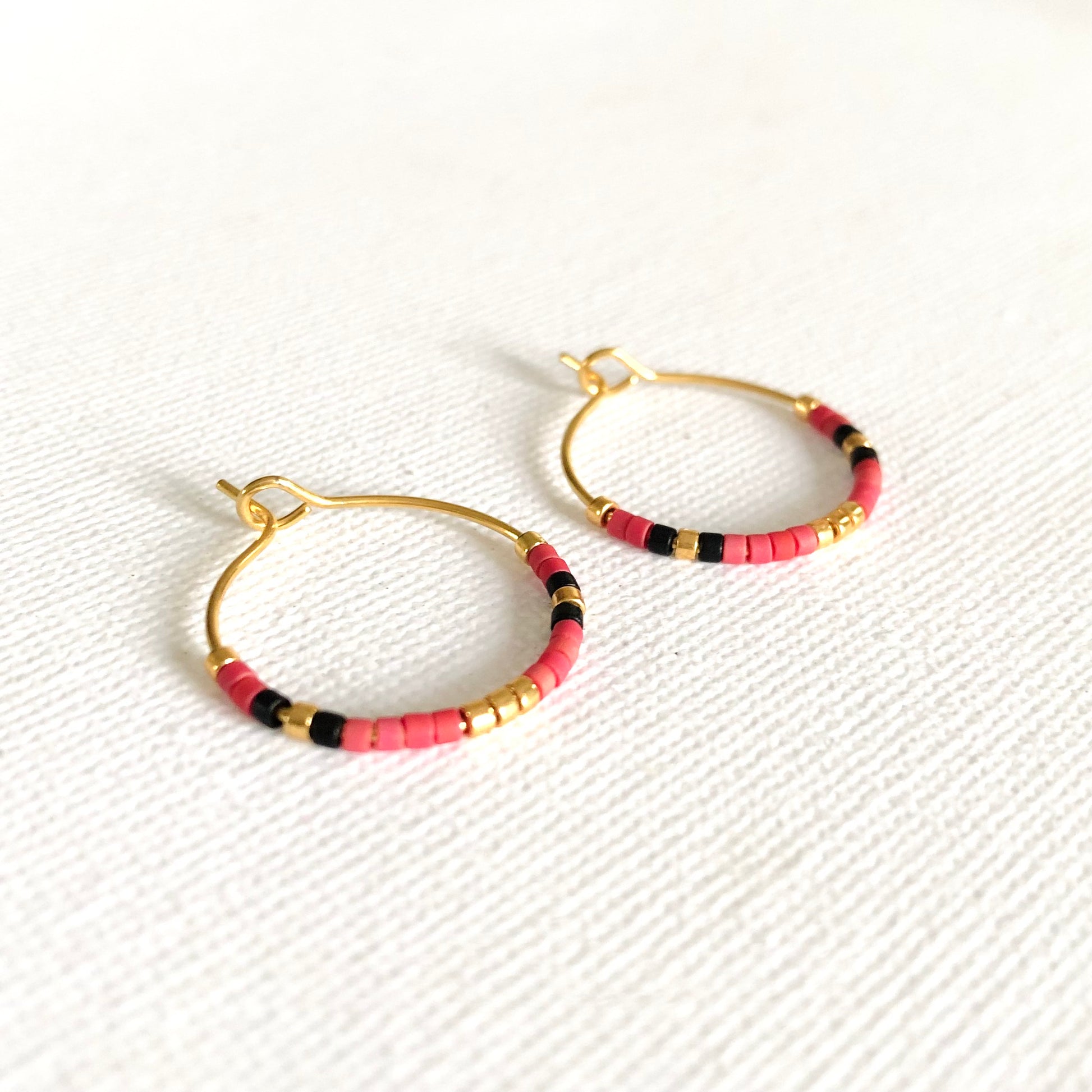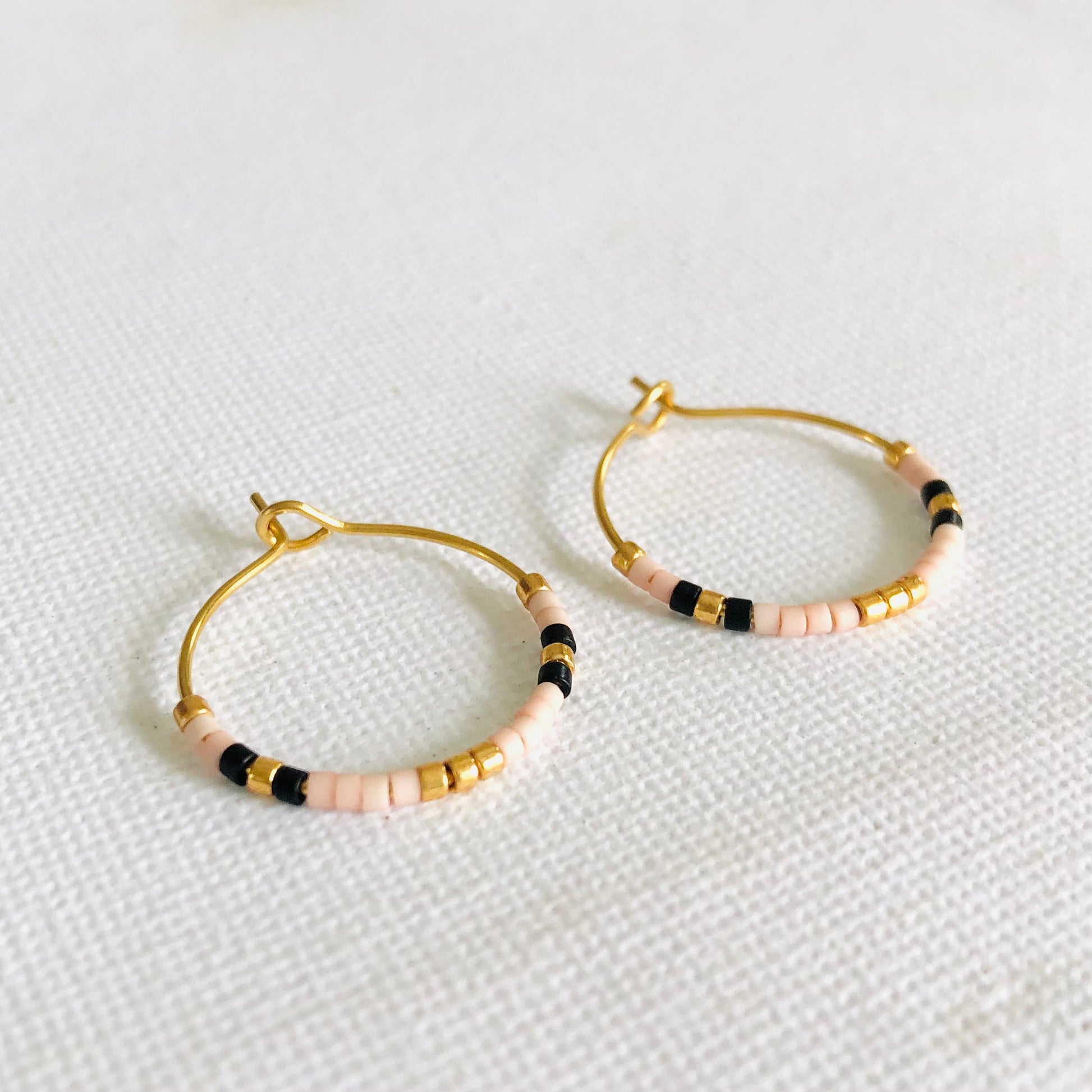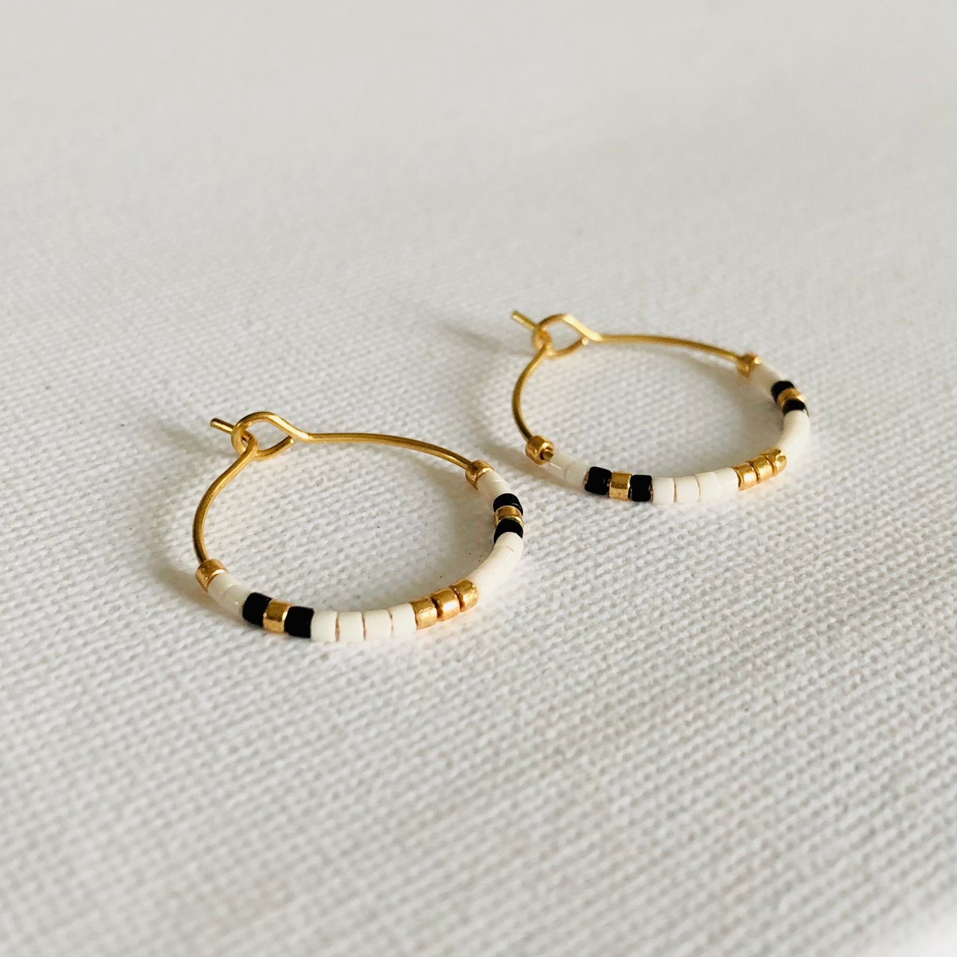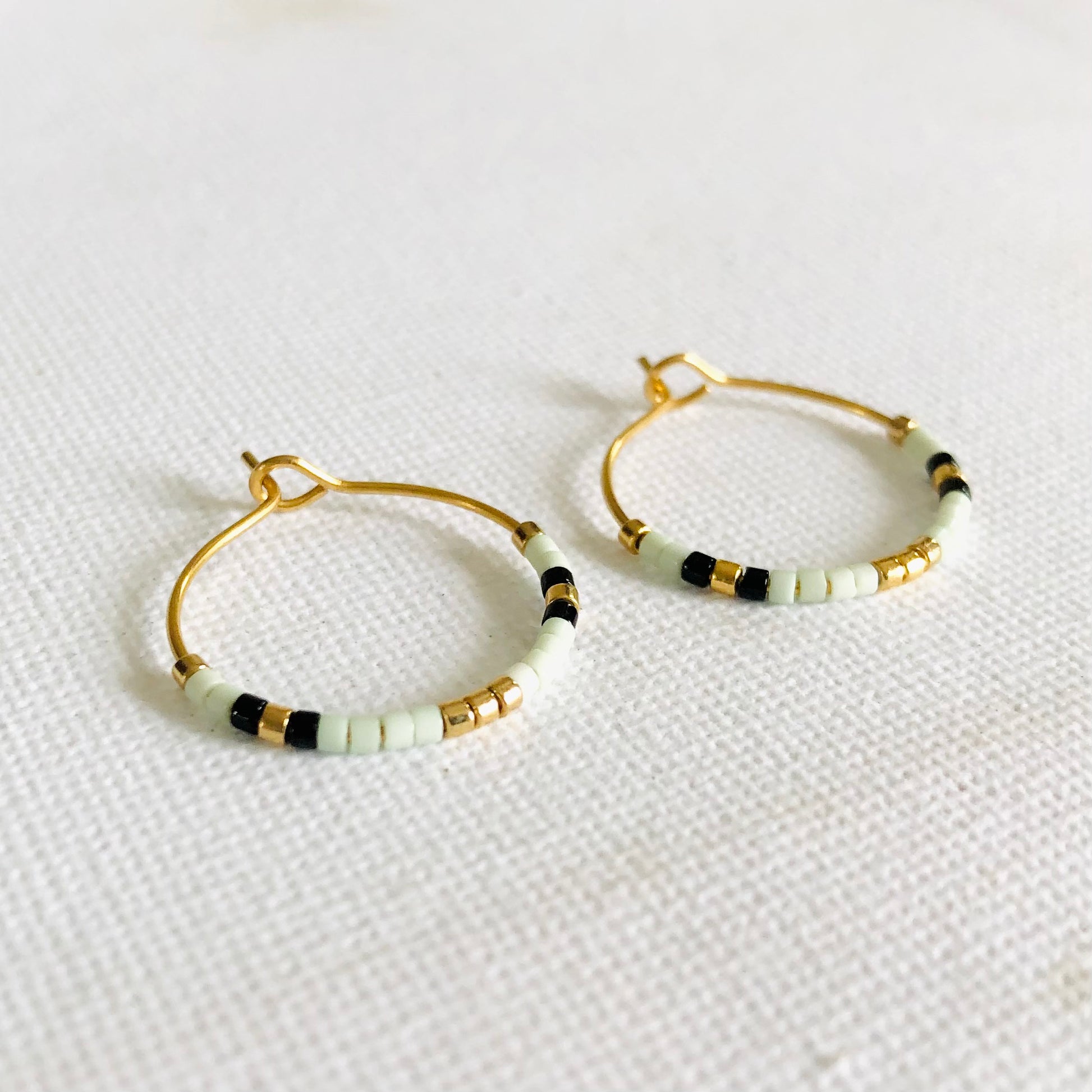 Mini aros realizados en Acero Inoxidable Chapado en Oro con unas cuentas Miyuki (cuentas de cristal japonesas).