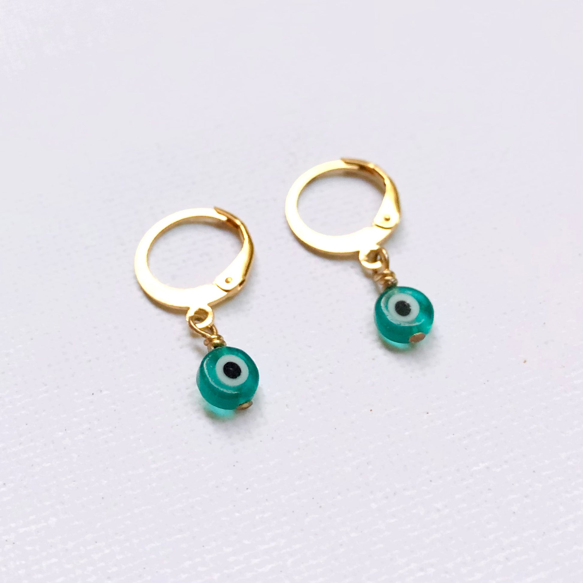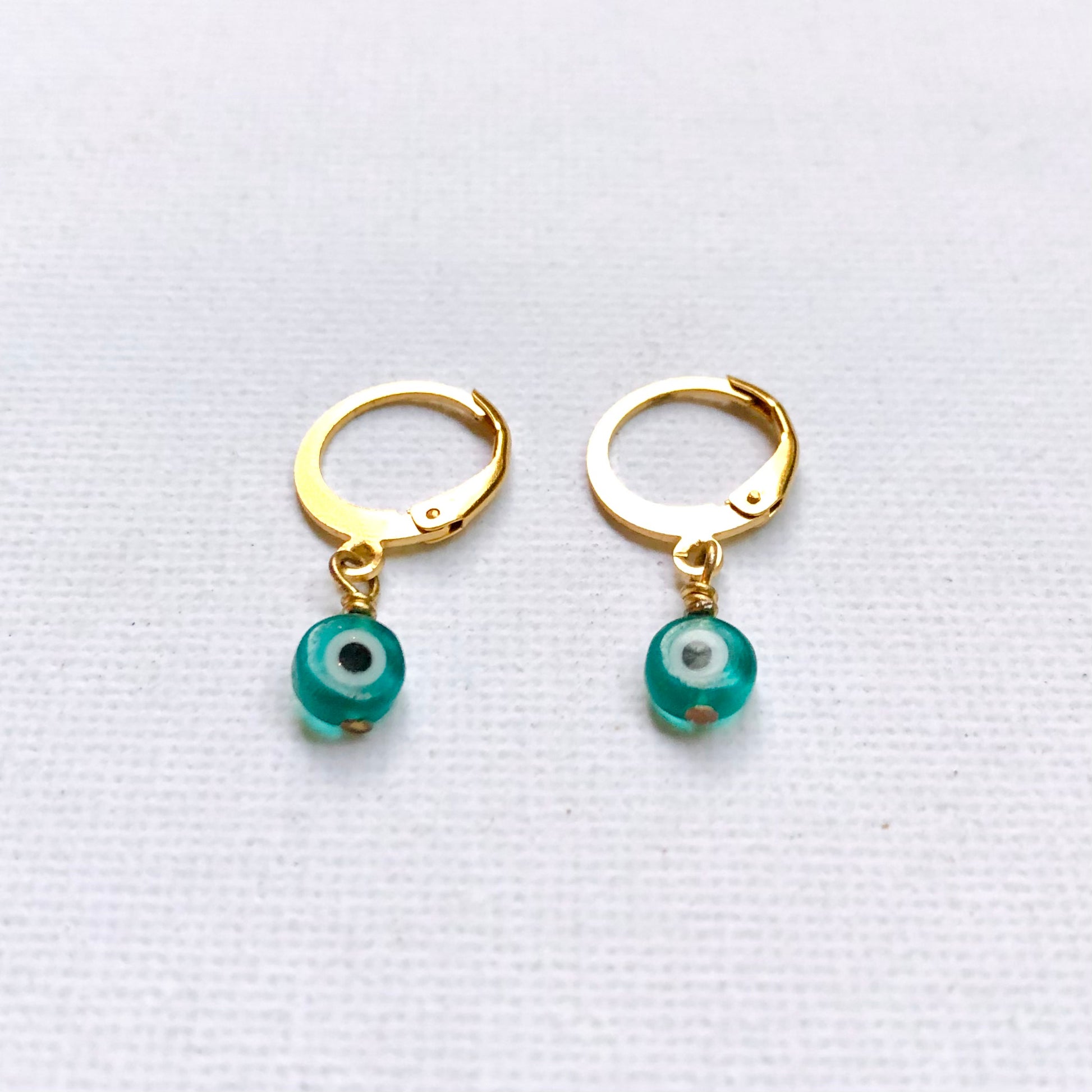 Pendientes de aros elaborados con un talismán de mal de ojo griego (Matiasma).