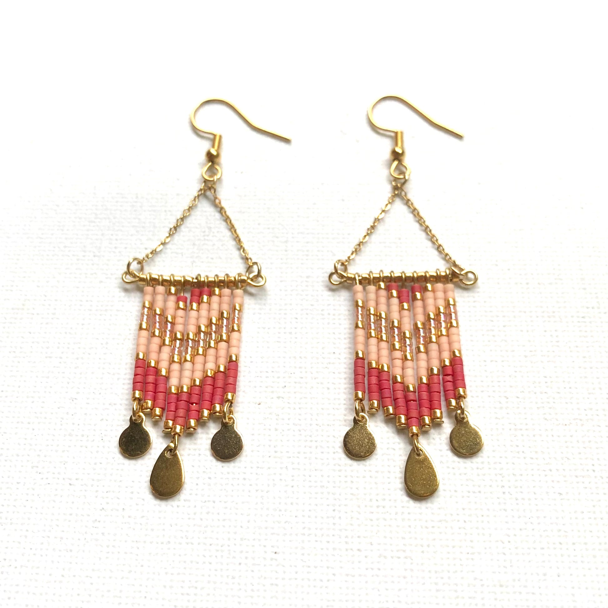 Pendientes colgantes hechos con cuentas Miyuki (cuentas japonesas de vidrio).