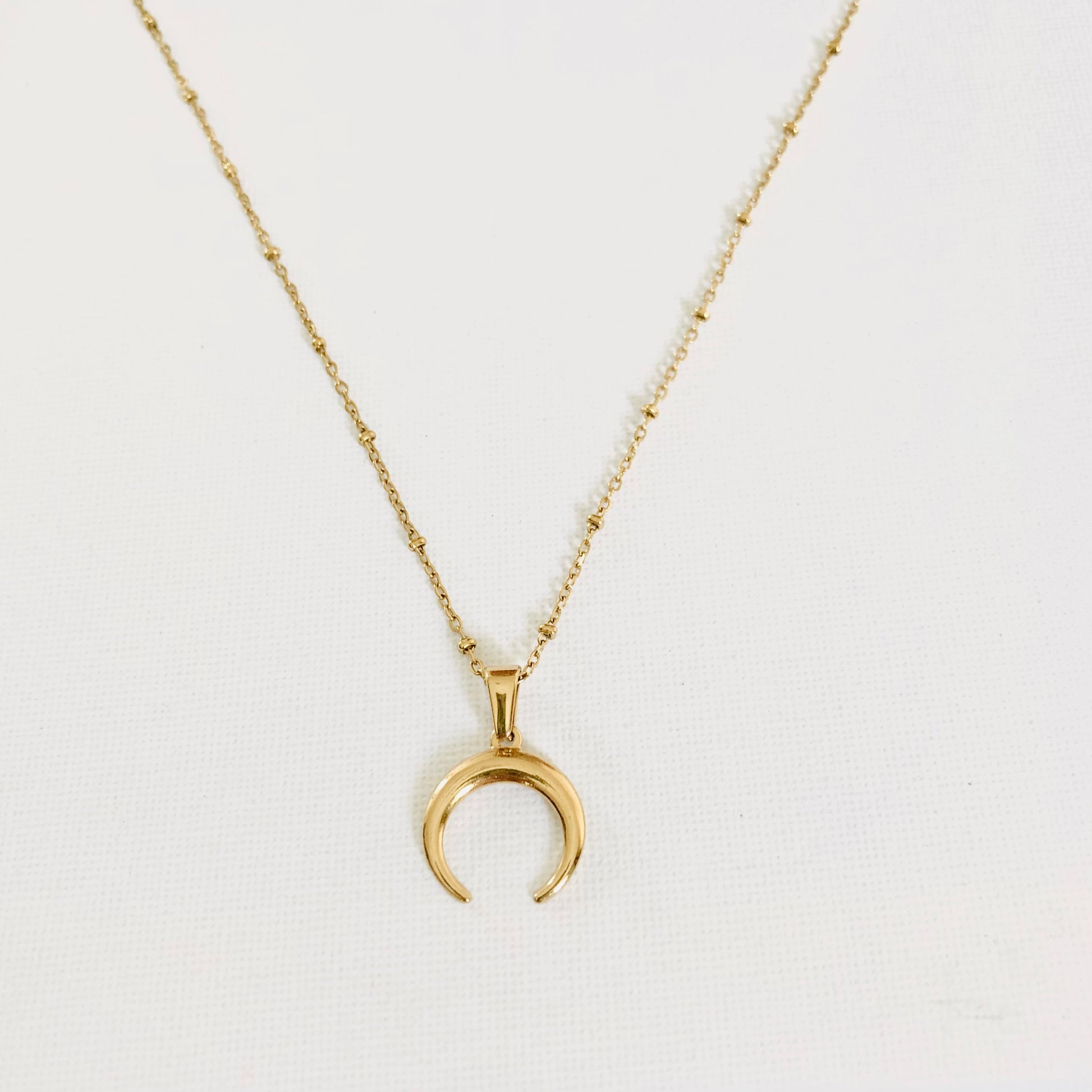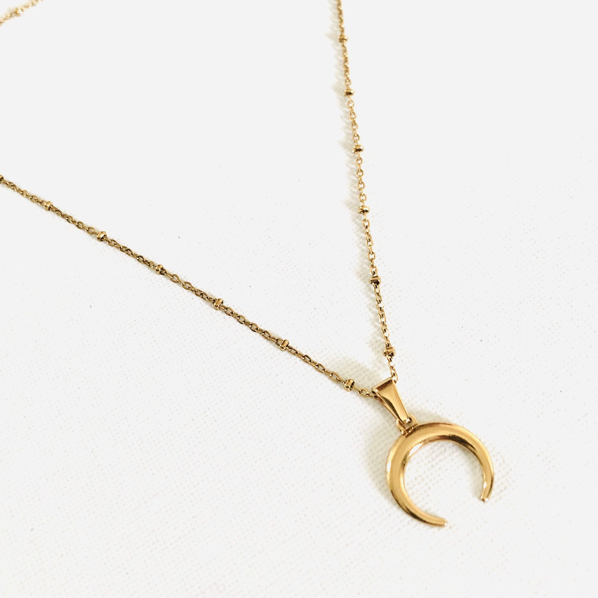 Collar elaborado con una cadena de bolas y un colgante de luna.