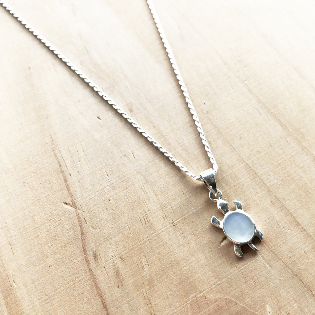 Con colgante de tortuga elaborado con plata y concha de abulón o nácar.