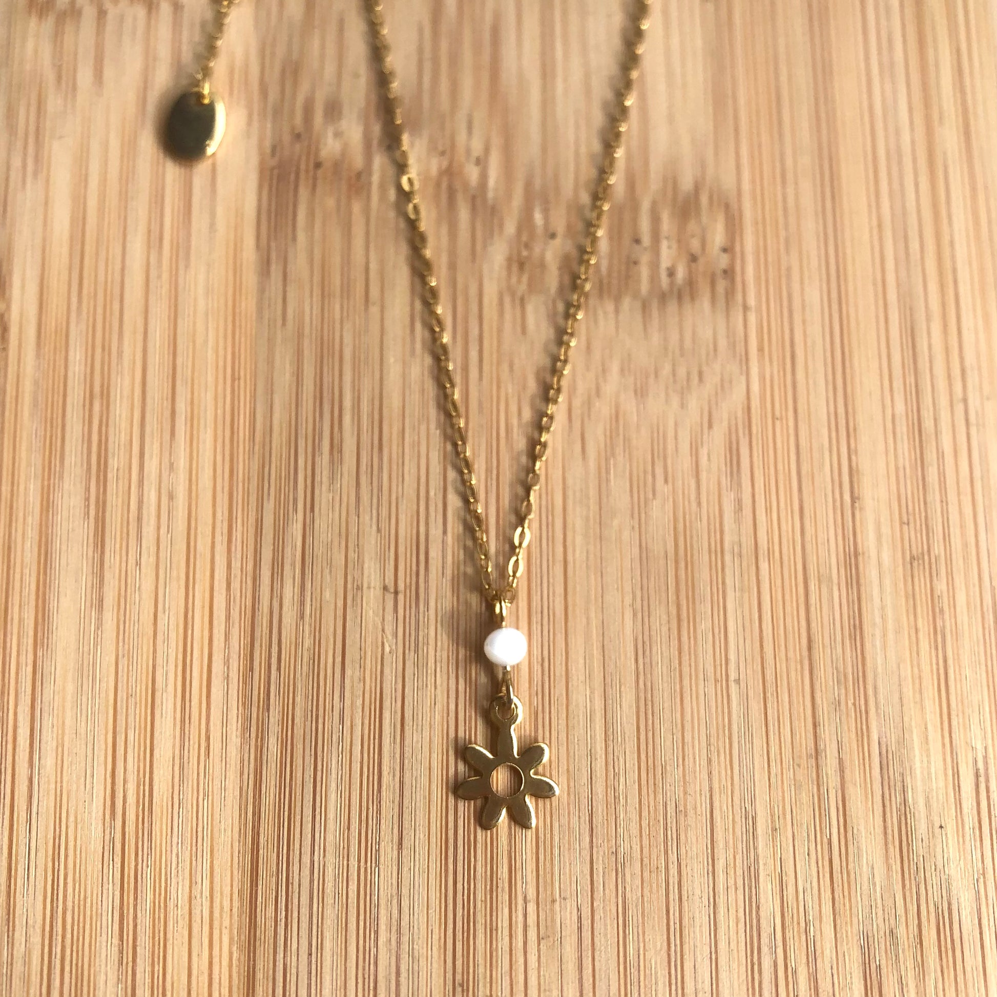 Collar corto elaborado con una fina cadena y un colgante de flor mini margarita.