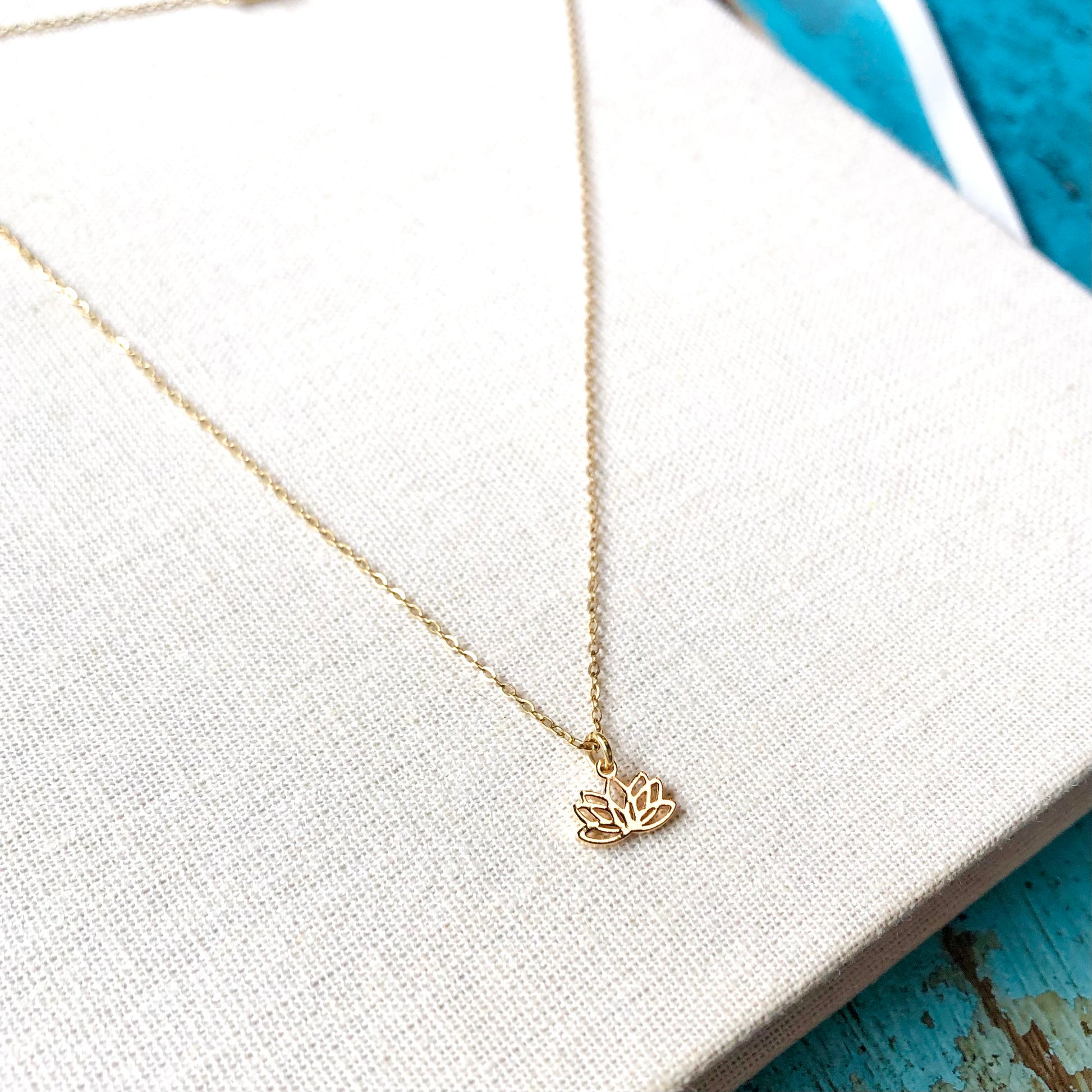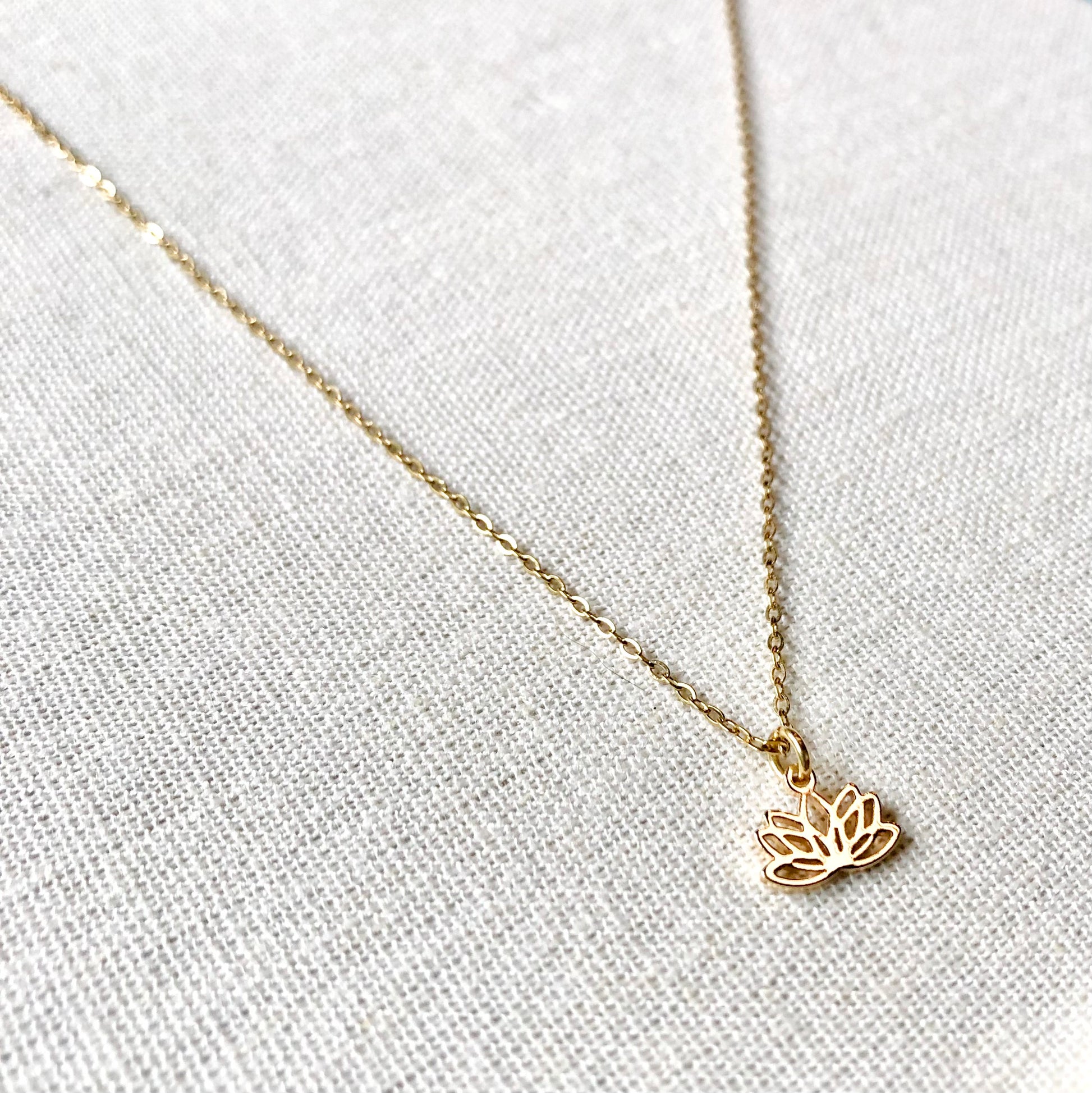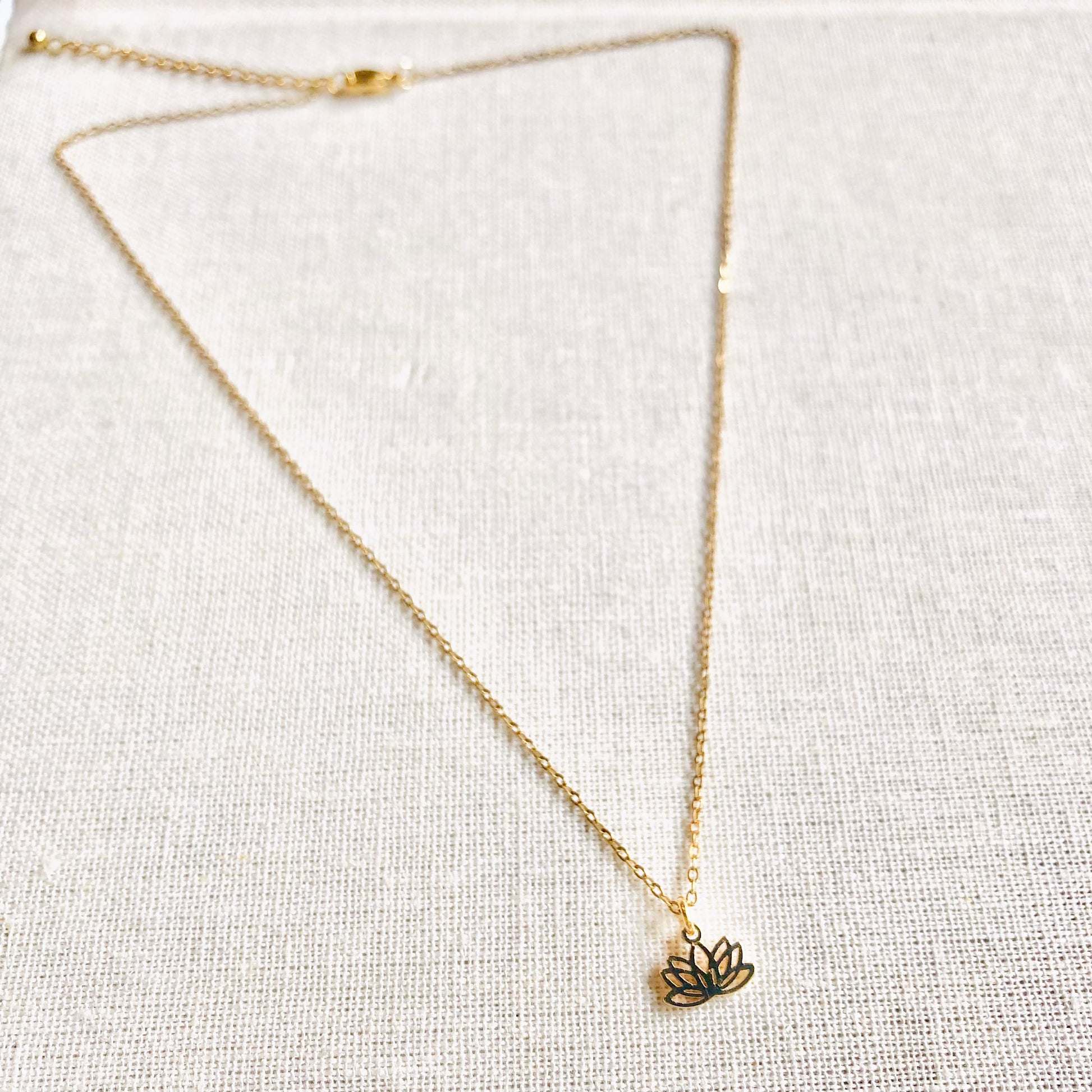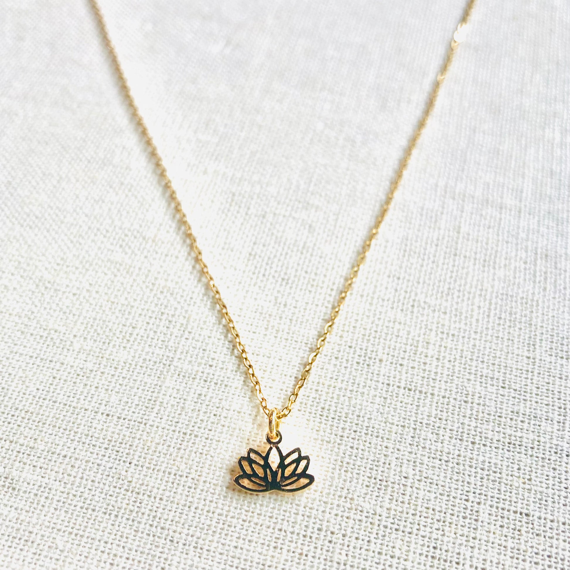 Collar corto elaborado con una fina cadena y un colgante de flor de loto.