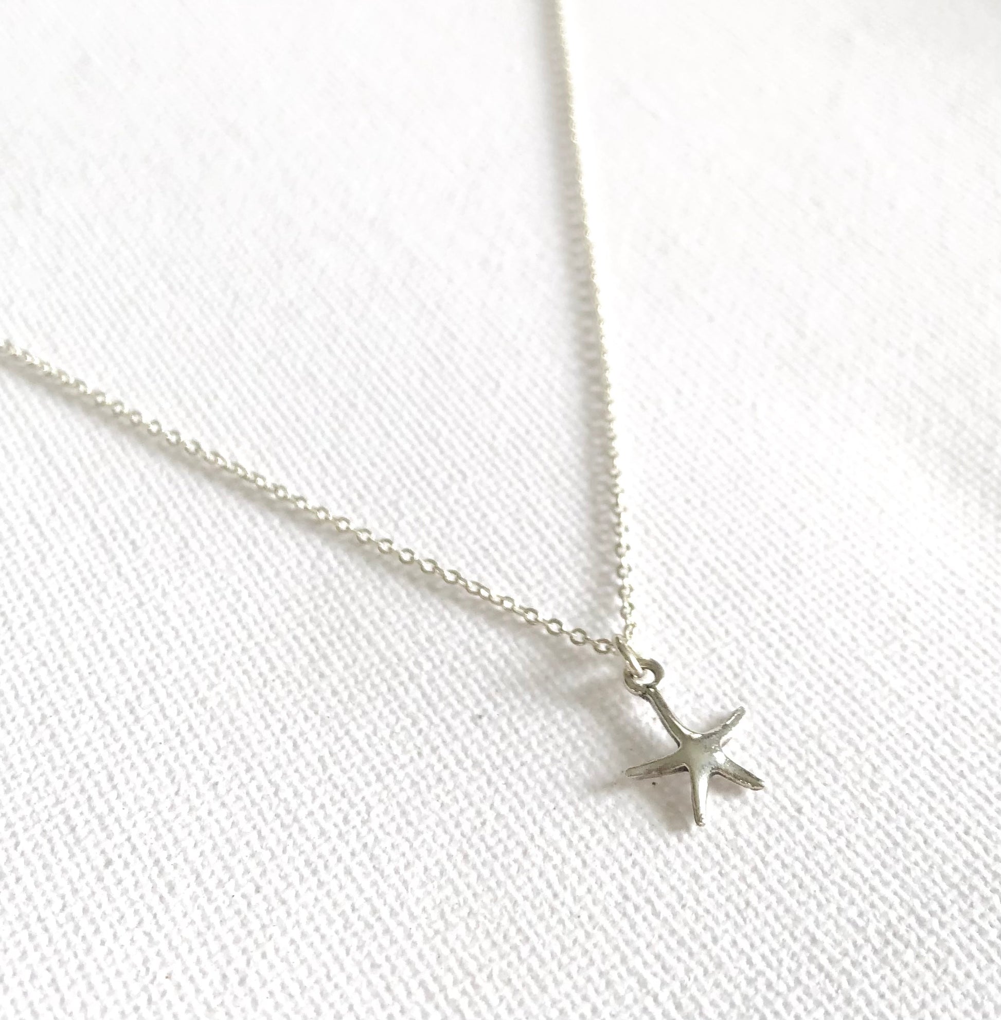Collar corto realizado en plata de ley 925 con cadena de plata y colgante de estrella de mar.