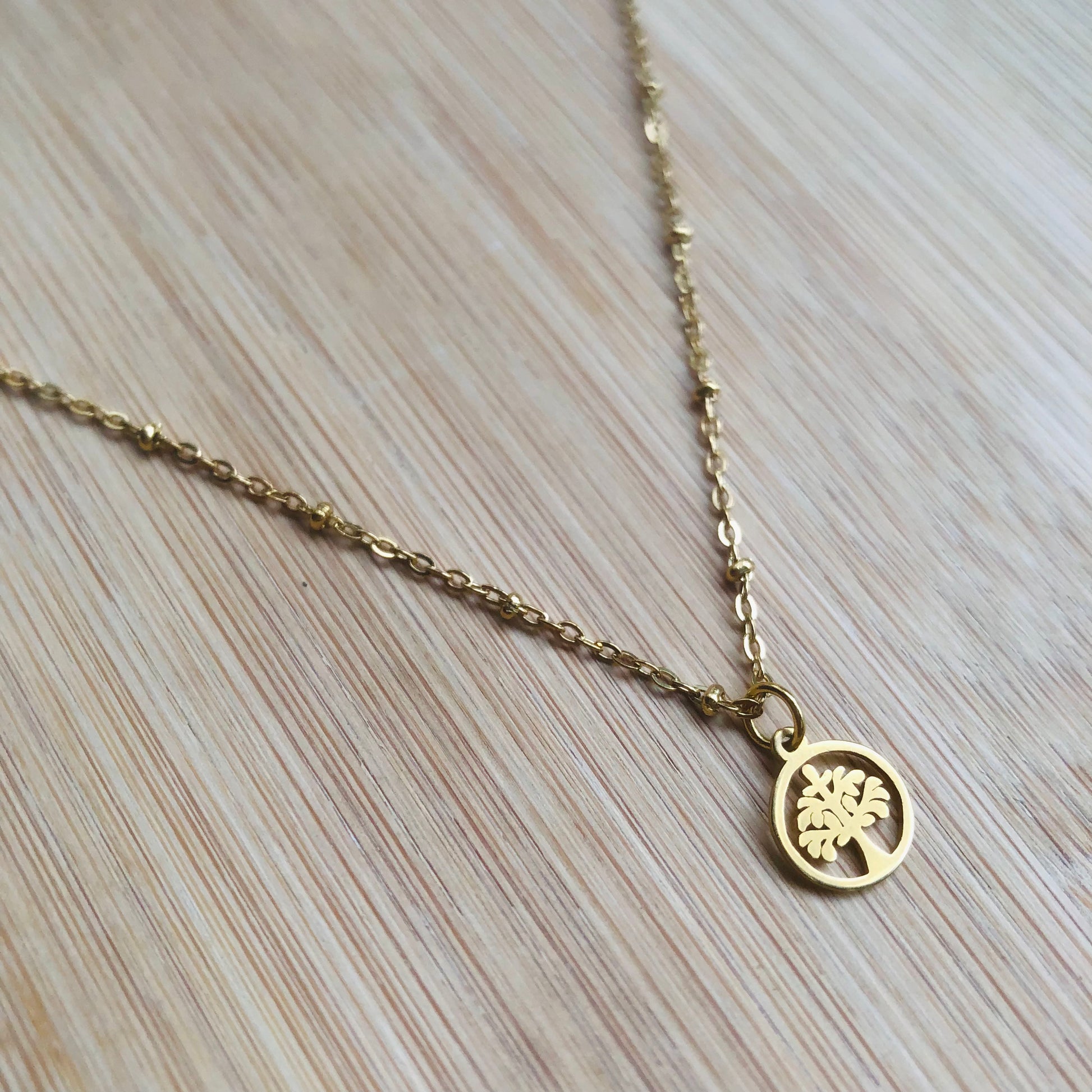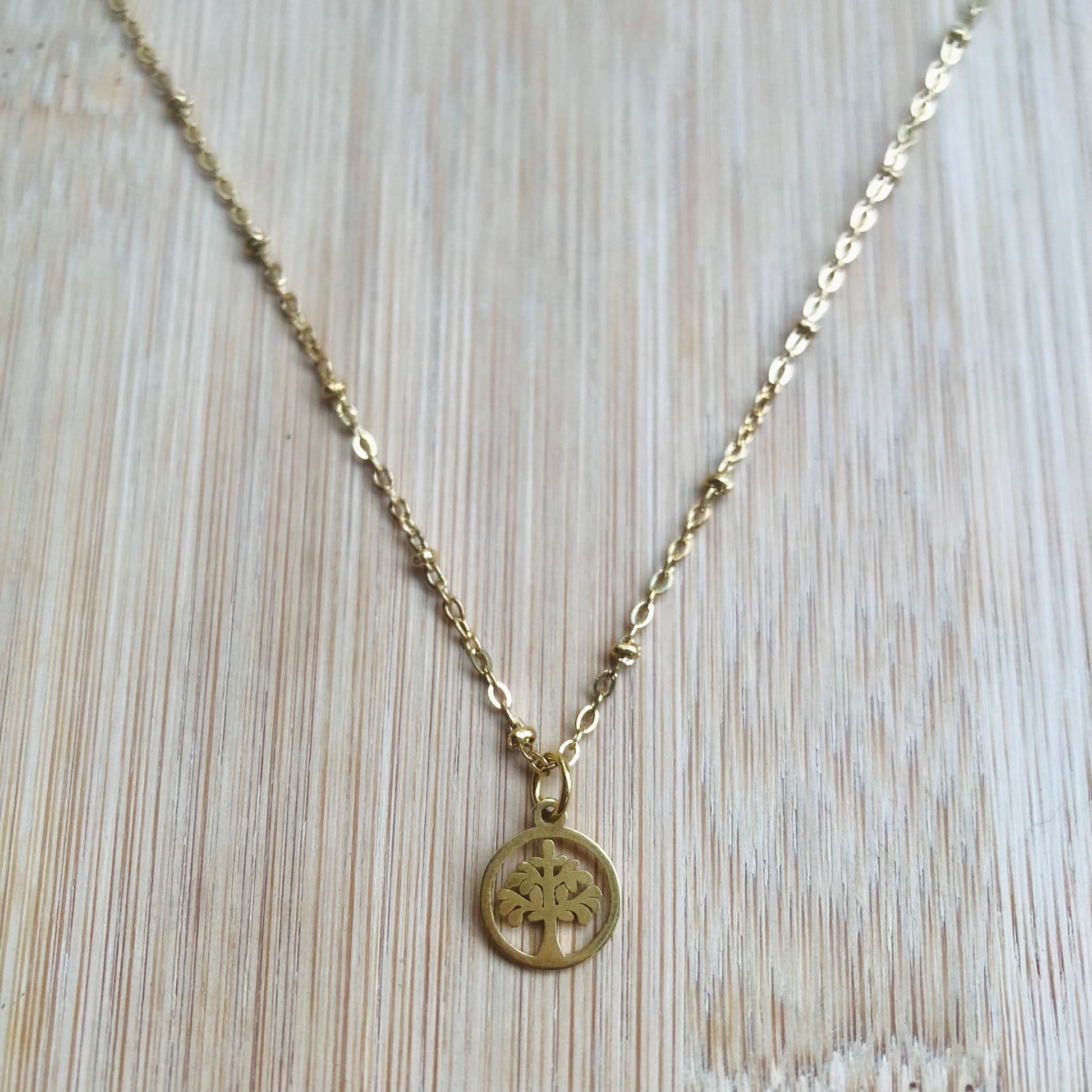 Collar corto elaborado con una fina cadena y un colgante del árbol de la vida.