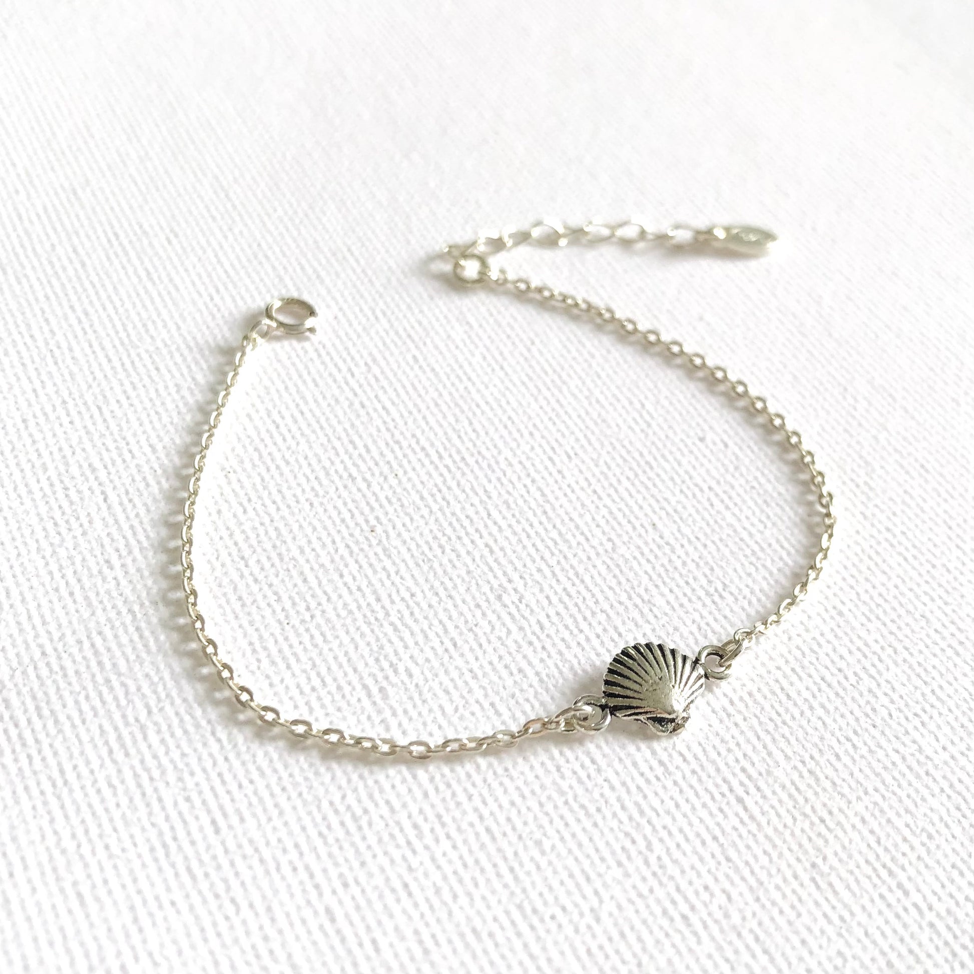 A bracelet made in 925 sterling silver with a silver shell pendant.